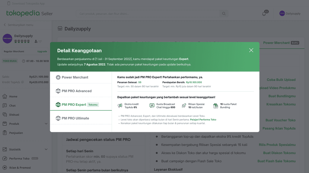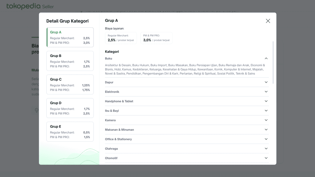 To secure Tokopedia Seller’s ecosystem sustainability, this project was initiated to restructure Tokopedia Seller’s membership mechanism (PM auto-upgrade to PM PRO) and change the commission rate to category-based charging.